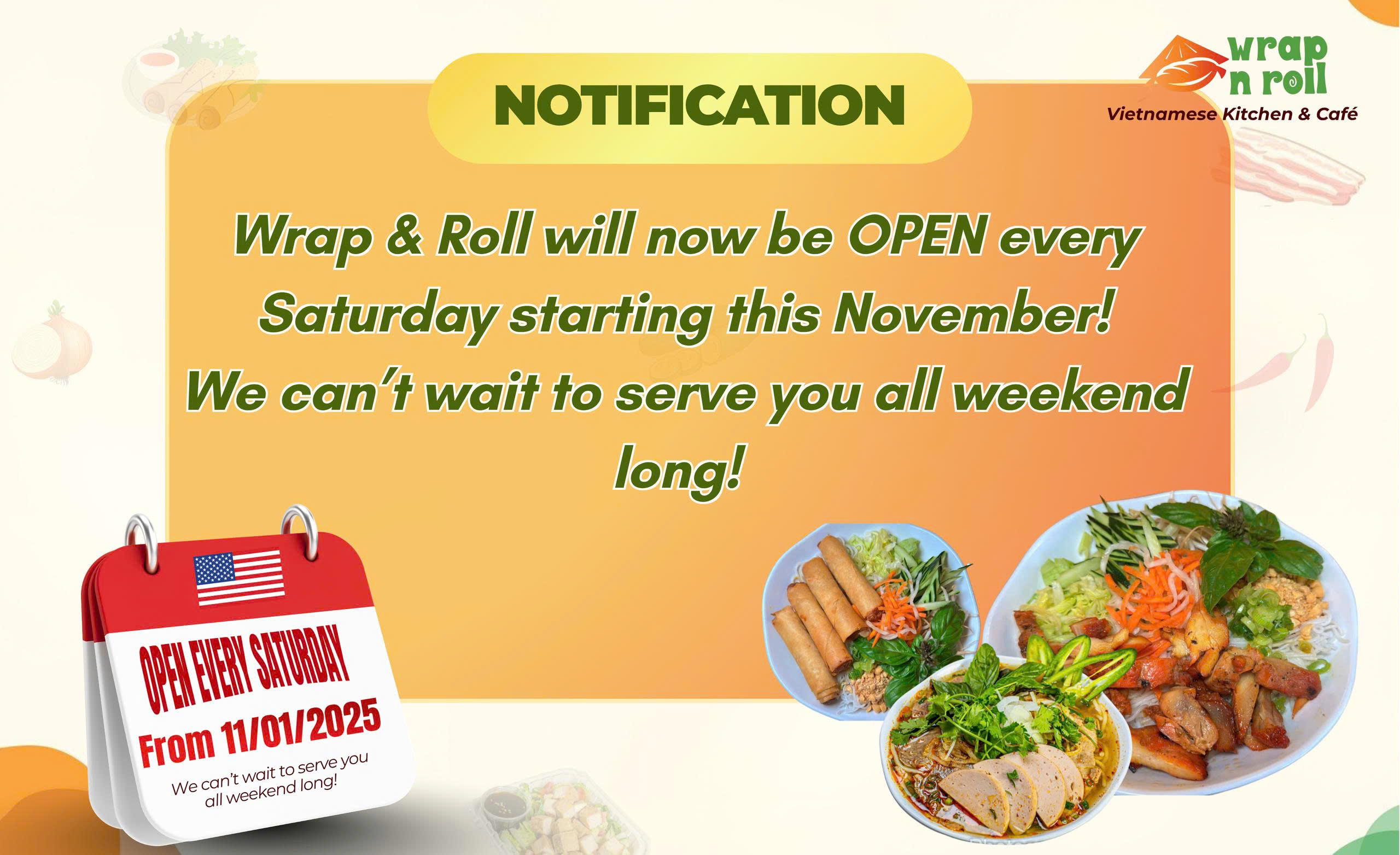 Welcome to Wrap n Roll - your destination for authentic Vietnamese fast food, sandwiches and delightful coffee! We are passionate about bringing you the rich flavors of Vietnam in every bite, carefully crafted with love and fresh ingredients. From our mouthwatering banh mi sandwiches, refreshing rolls, rice and vermicelli, to aromatic coffee blends and boba drinks, we're dedicated to delivering an unforgettable culinary experience.